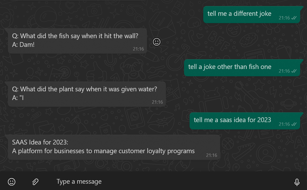 But that's not all, ChatGPT WhatsApp Bot is not just limited to answering questions, it can also assist you with your day to day tasks. Whether you need a quick translation, help with homework or want to know the latest news, ChatGPT has got you covered.